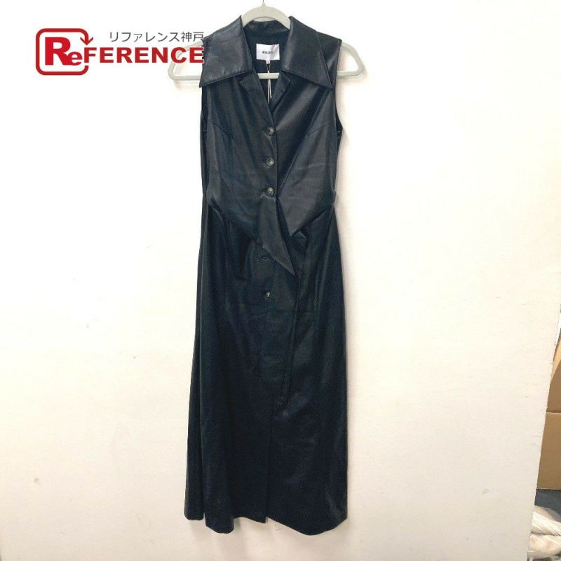 【中古良品】ナヌーシュカ 黒色 Nanushka ナヌーシュカ ワンピース ロング ノースリーブ ヴィーガンレザー アパレル ベルト付き ドレス ポリエステル /ポリウレタン レディース ブラック 【中古】