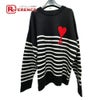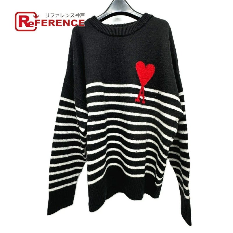 アミパリス 黒色 Ami Paris アミパリス 21AW ハート ロゴ ボーダー アパレル セーター ウール メンズ ブラック 【中古】