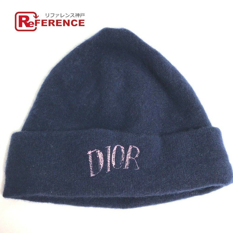 【中古良品】ディオール 紺色 Dior ディオール 013MB10AT995 ロゴ ビーニー 帽子 ニット帽 ニットキャップ ニット帽 カシミヤ メンズ ネイビー 【中古】
