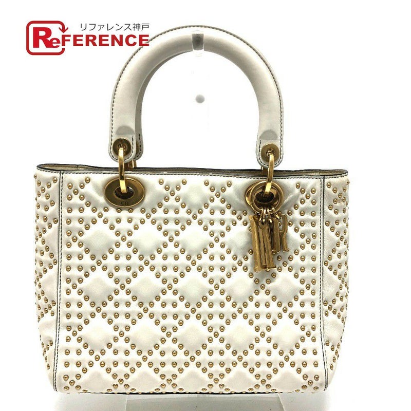 商品説明 定番人気のレディディオールです。可愛らしく、柔らかい印象のホワイトクリームカラー。上質なレザーにゴールドのスタッズが施されたラグジュアリーな逸品です。