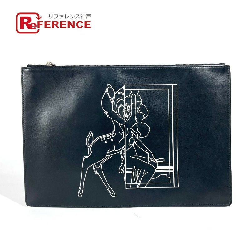 【中古良品】ジバンシー 黒色 GIVENCHY Paris ジバンシー ディズニー DISNEY バンビ BAMBI カバン セカンドバッグ ポーチ クラッチバッグ レザー ユニセックス ブラック 【中古】