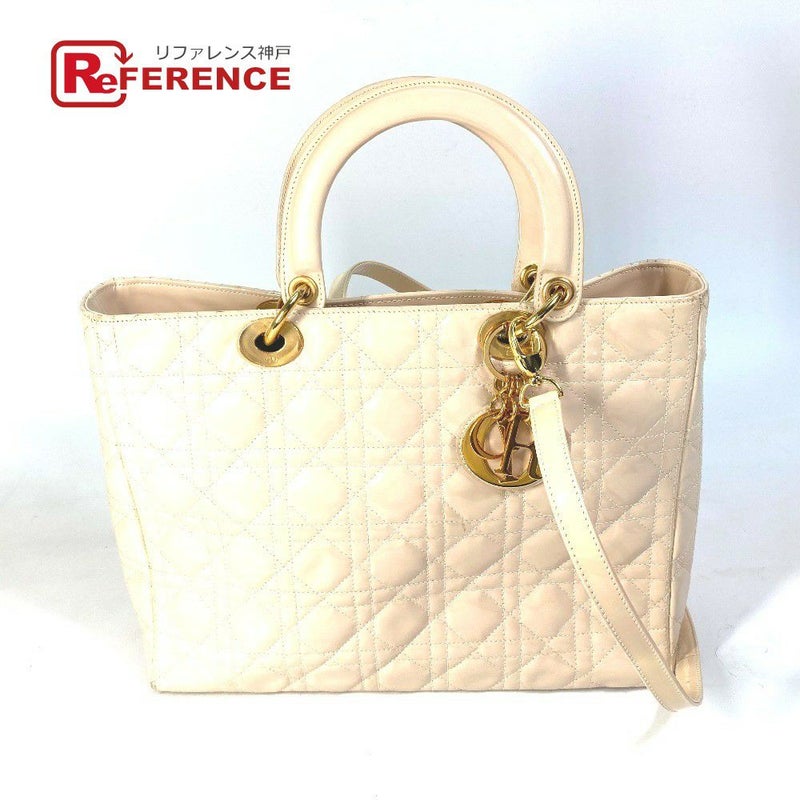 ディオール 薄茶色 Dior ディオール レディディオール LADYDIOR カナージュ カバン 2WAY ショルダーバッグ 肩掛け ハンドバッグ パテントレザー レディース ベージュ系 【中古】