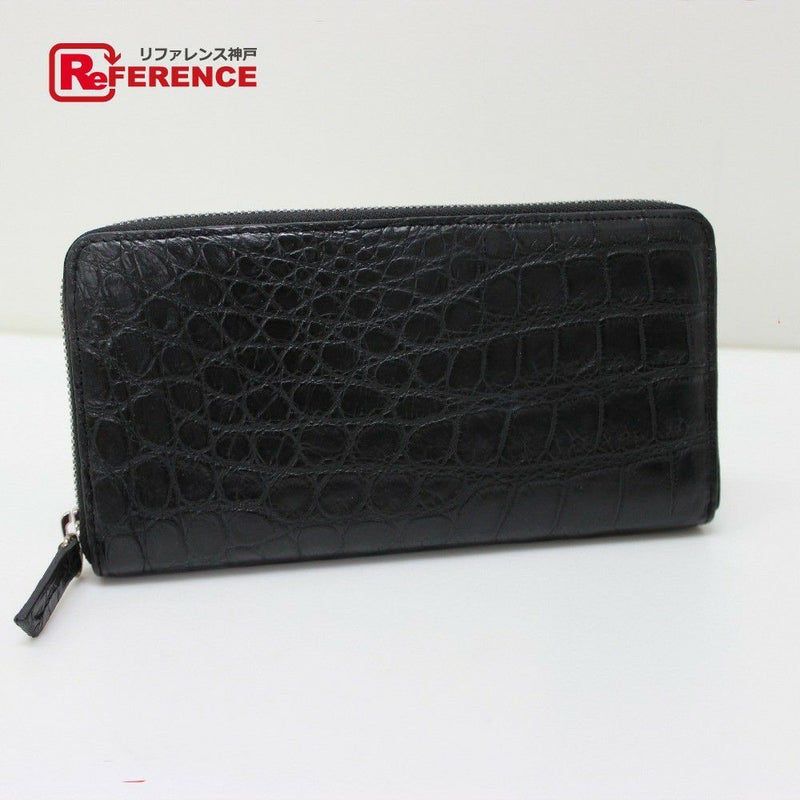 【未使用】ノーブランド 黒色 no brand ノーブランド ラウンドファスナー 長財布 クロコダイル ユニセックス ブラック 未使用 【中古】
