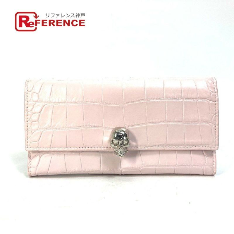 【中古良品】アレキサンダーワン Alexander Wang アレキサンダーワン ラインストーン スカル ドクロ クロコ型押し 長財布 レザー レディース ピンク 【中古】