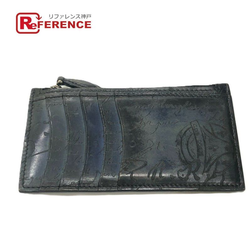 【中古良品】ベルルッティ 青色 Berluti ベルルッティ スクリット フラグメントケース カードケース カード入れ コインケース レザー レディース ブルー 【中古】