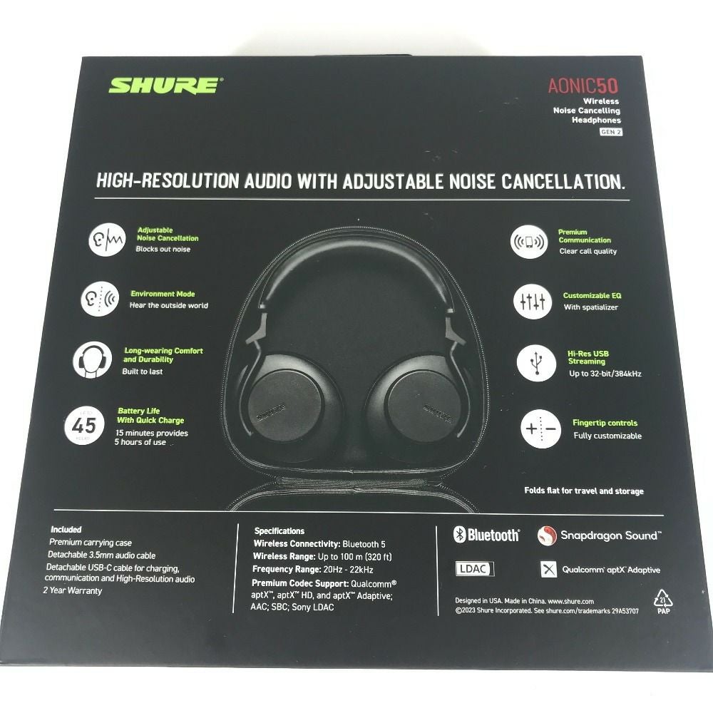 他の画像を見る 【美品】シュア 黒色 SHURE シュア SBH50G2-BK-J ワイヤレス・ノイズキャンセリングヘッドホン AONIC 50 GEN 2 ヘッドホン ヘッドフォン プラスチック ユニセックス ブラック 【中古】 美品SAランク 通常価格 ¥ 35,200 特別オンライン価格 ¥ 34,000 税込 カートに入れる お気に入りに登録する
