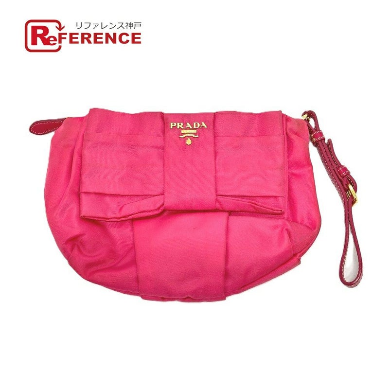 プラダ PRADA プラダ 1N1422 ロゴ リボン 小物 ストラップ付 マルチポーチ 収納ポーチ アクセサリーポーチ 化粧ポーチ ナイロン レディース ピンク 【中古】