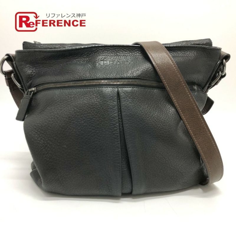 プラダ 黒色 PRADA プラダ VA0802 斜め掛け フロント ポケット カバン ショルダーバッグ レザー レディース ブラック 【中古】