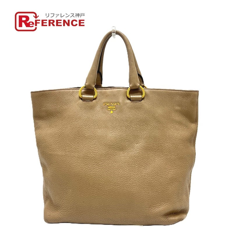プラダ 薄茶色 PRADA プラダ BN1713 ロゴ カバン バッグ ハンドバッグ トートバッグ ナイロン/レザー レディース ベージュ 【中古】