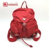 プラダ 赤色 PRADA プラダ バックパック ロゴプレート 三角 トライアングルロゴ Wポケット カバン リュックサック ナイロン レディース レッド 【中古】