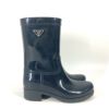 プラダ 紺色 PRADA プラダ トライアングルロゴ 三角ロゴ プレート 靴 シューズ レインブーツ レインシューズ ラバー レディース ネイビー 【中古】