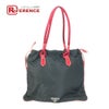 【中古良品】プラダ 黒色 PRADA プラダ バイカラー ロゴ 巾着 トライアングルロゴ 三角ロゴ プレート トートバッグ ショルダーバッグ 肩掛け カバン ハンドバッグ エナメル /ナイロン レディース ブラック 【中古】