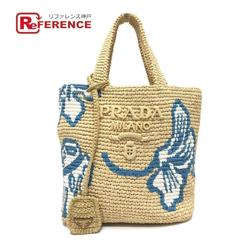 【中古良品】プラダ 薄茶色 PRADA プラダ 1BG454 ロゴ セントバース島限定 スモールバック ハンドバック カバン バック ハンドバッグ ラフィア レディース ベージュ 【中古】