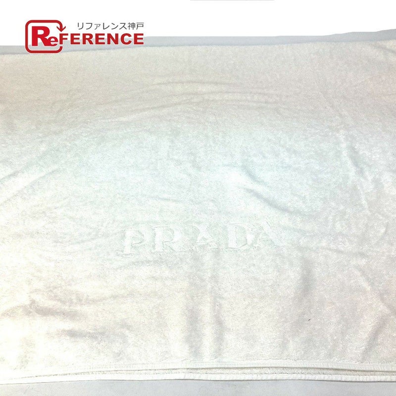 【中古良品】プラダ 白色 PRADA プラダ バスタオル インテリア ひざかけ ブランケット ロゴ ビーチタオル タオル コットン レディース ホワイト 【中古】