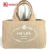 プラダ 薄茶色 PRADA プラダ B1877B カナパ カバン トートバッグ ショルダーバッグ 肩掛け ハンドバッグ キャンバス ユニセックス ベージュ 【中古】