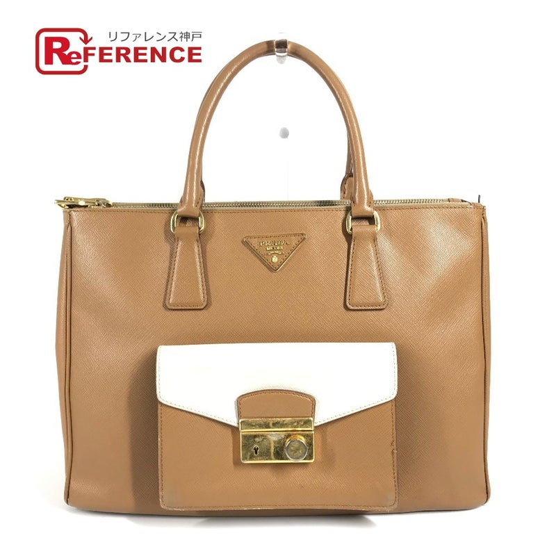 プラダ 茶色 PRADA プラダ バイカラー トライアングルロゴ 三角ロゴ プレート カバン トートバッグ 書類バッグ ビジネスバッグ ハンドバッグ サフィアーノレザ- ユニセックス ブラウン 【中古】