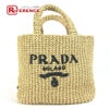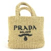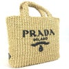【美品】プラダ 薄茶色 PRADA プラダ 1BG422 カゴバッグ ストローバッグ クロシェ 三角ロゴ トライアングル スモール レタリングロゴ トートバッグ バック カバン ハンドバッグ ラフィア レディース ナチュラル ベージュ 【中古】