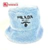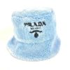 プラダ 青色 PRADA プラダ 1HC137 ファー ロゴ バケットハット 帽子 パイル ハット ポリエステル レディース ブルー 【中古】