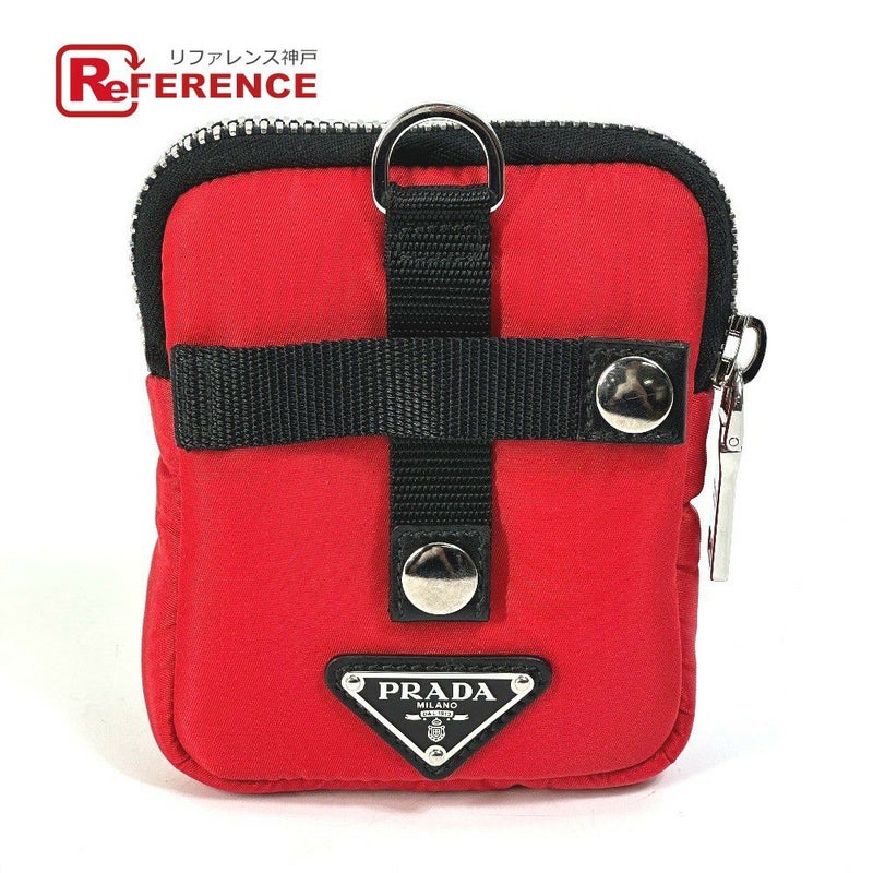 【美品】プラダ 赤色 PRADA プラダ 2NA026 トライアングルロゴ 三角ロゴ プレート TESSUTO SOFT バイカラー ポーチ ナイロン メンズ レッド 【中古】
