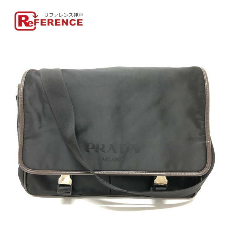 プラダ 黒色 PRADA プラダ VA0793 フラップ ロゴ メッセンジャーバッグ カバン 斜め掛けバック ショルダーバッグ ナイロン メンズ ブラック 【中古】