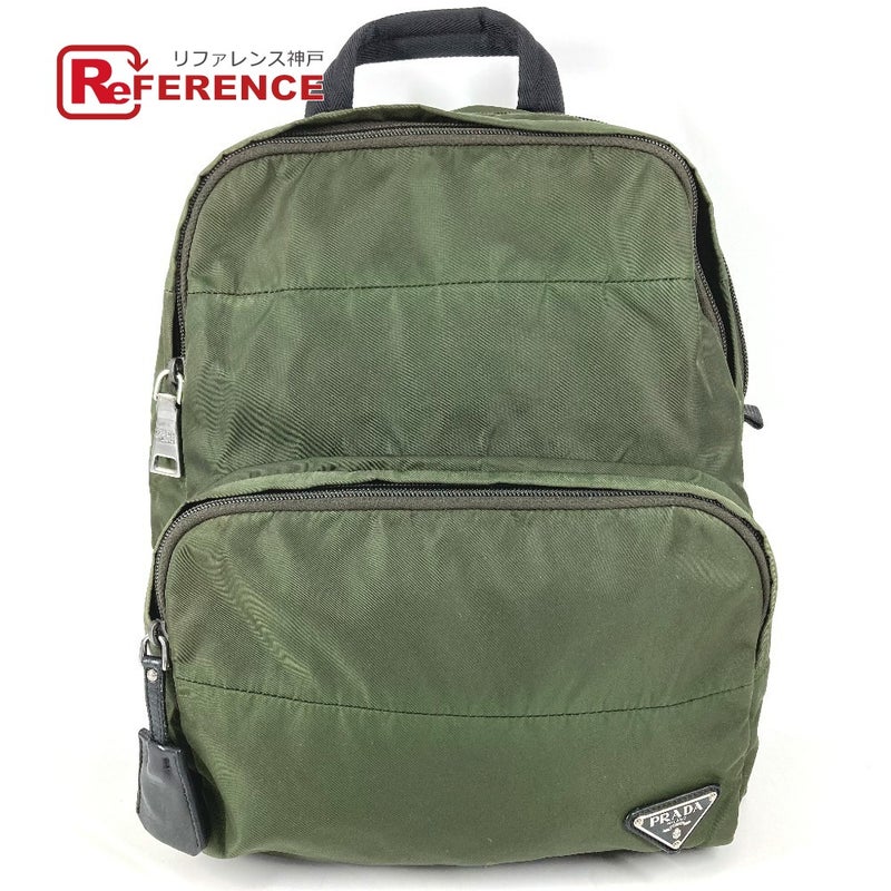 プラダ 緑色 PRADA プラダ トライアングルロゴ 三角ロゴ プレート カバン バックパック リュックサック ナイロン ユニセックス カーキ 【中古】