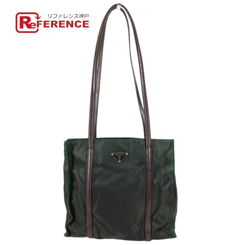 プラダ 緑色 PRADA プラダ トライアングルロゴ 三角ロゴ プレート ハンドバッグ トートバッグ ショルダーバッグ ナイロン ユニセックス カーキ 【中古】