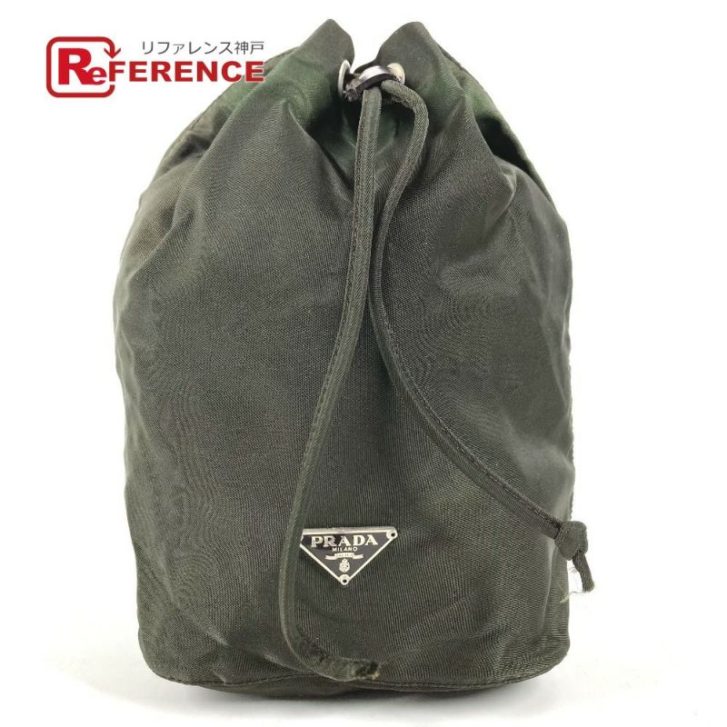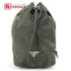 プラダ 緑色 PRADA プラダ 巾着ポーチ トライアングルロゴ 三角ロゴ プレート マルチポーチ ポーチ ナイロン ユニセックス カーキ 【中古】