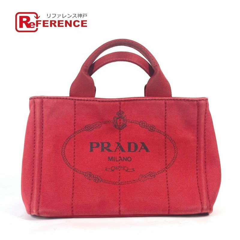 プラダ 赤色 PRADA プラダ ロゴプレート カナパ CANAPA ミニ MINI ハンドバッグ カバン トートバッグ キャンバス レディース レッド 【中古】
