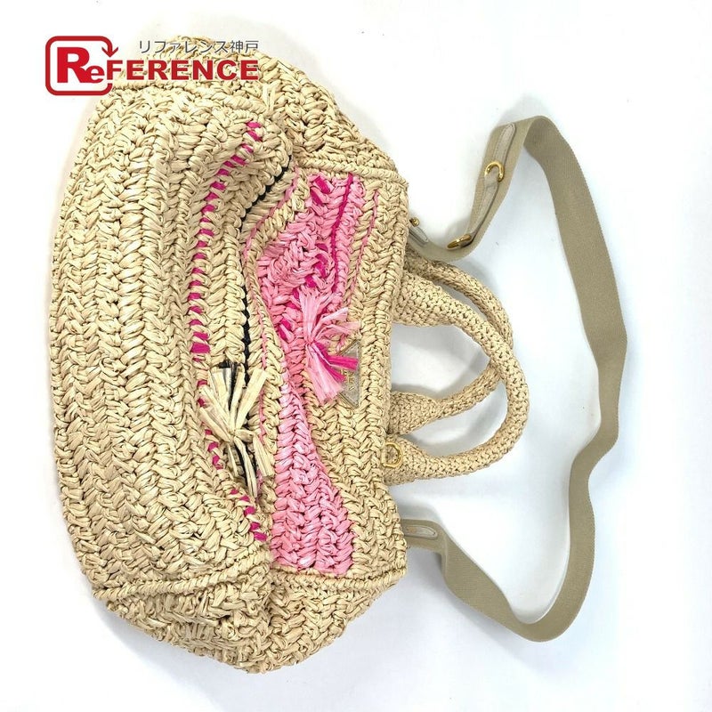 【中古良品】プラダ 薄茶色 PRADA プラダ トライアングルロゴ 三角ロゴ プレート カナパ 2WAYバッグ ショルダーバッグ 斜め掛け ハンドバッグ ラフィア レディース ベージュ 【中古】