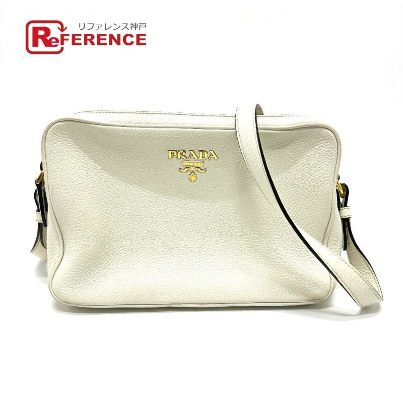 プラダ 白色 PRADA プラダ 斜め掛け ポシェット カバン ロゴ Wファスナーバッグ ショルダーバッグ レザー レディース ホワイト 【中古】