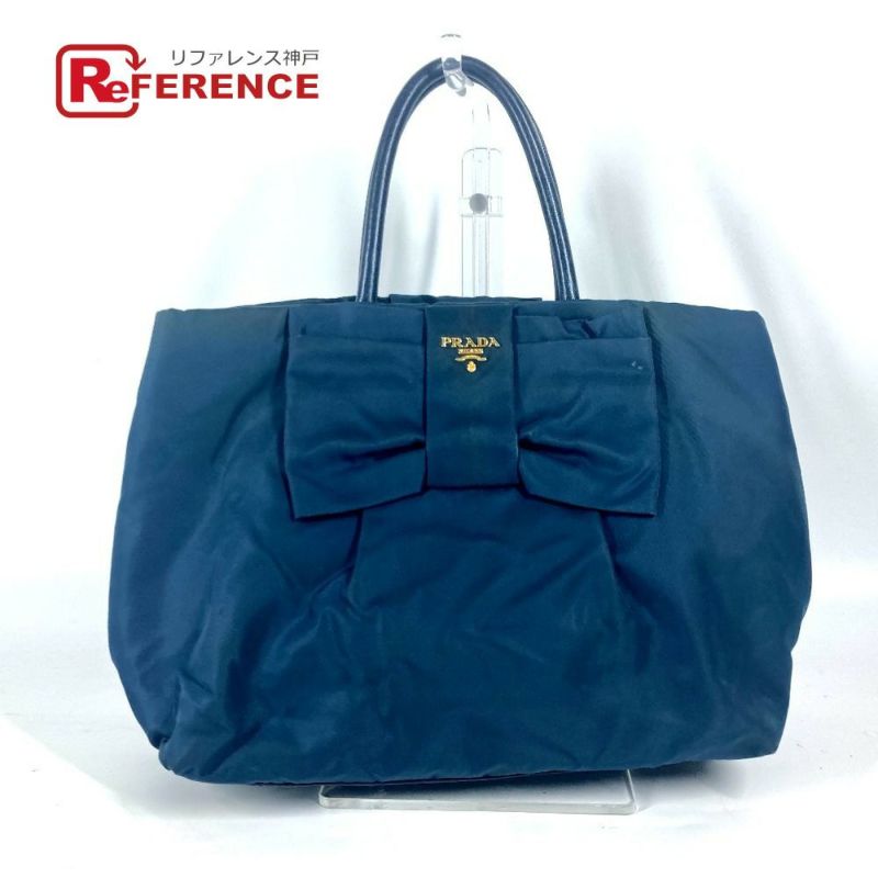 プラダ 青色 PRADA プラダ ロゴ リボン トートバッグ カバン ハンドバッグ ナイロン レディース ブルー系 【中古】