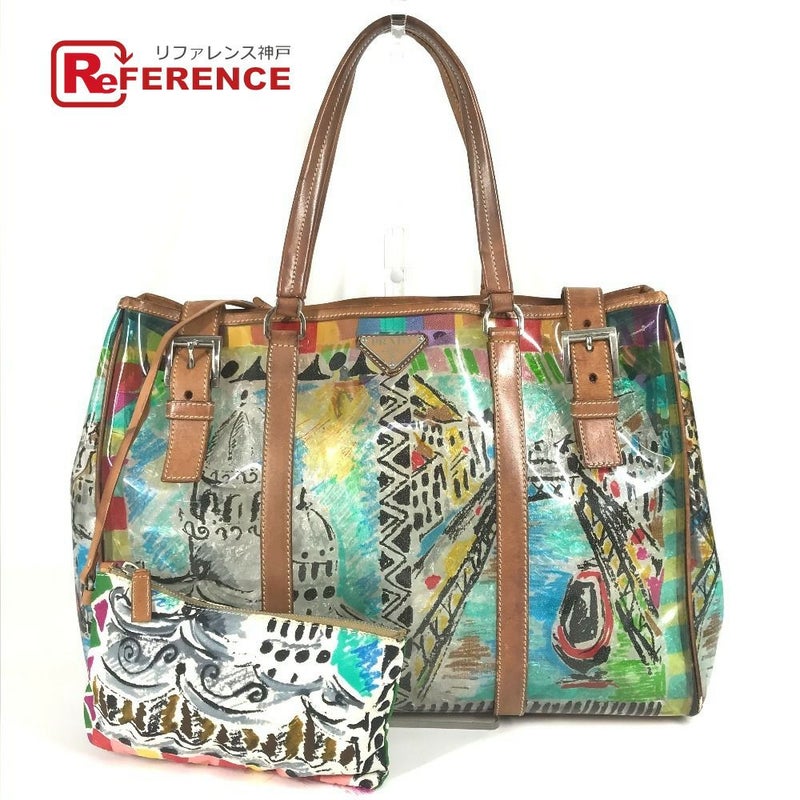 プラダ カラフル PRADA プラダ BR2515 ベネチアプリント 総柄 トライアングルロゴ 三角ロゴ プレート カバン ショルダーバッグ 肩掛け トートバッグ ビニール/レザー レディース マルチカラー 【中古】
