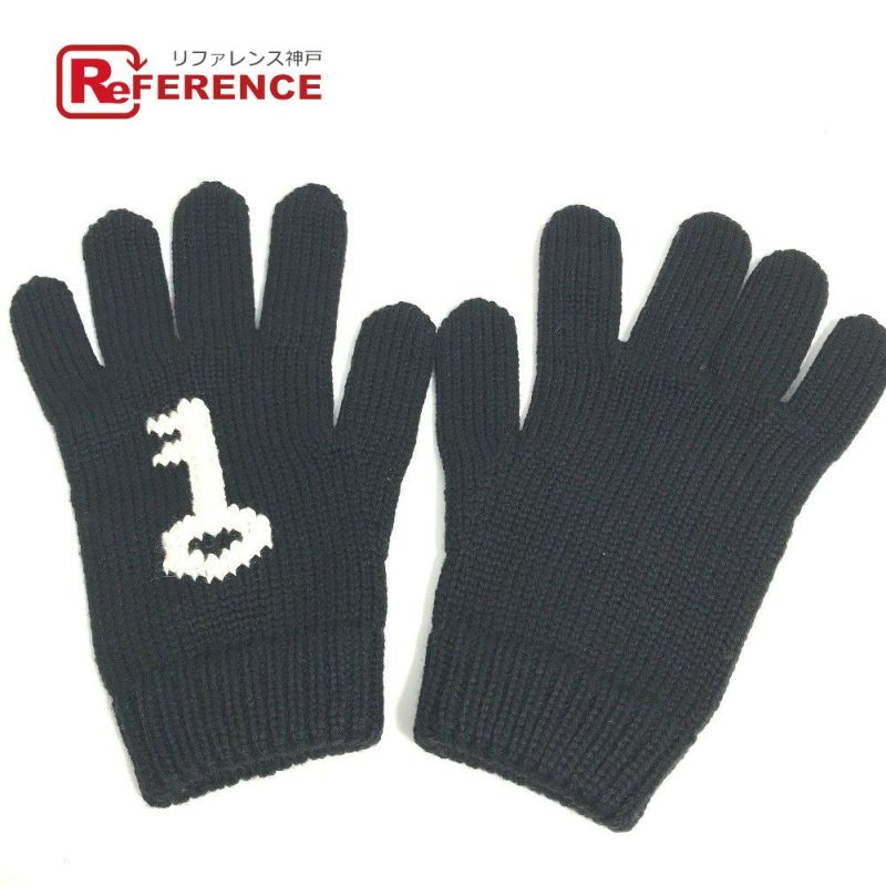 【美品】プラダ 黒色 PRADA プラダ グローブ 鍵 キー デザイン 手袋 ウール レディース ブラック 【中古】