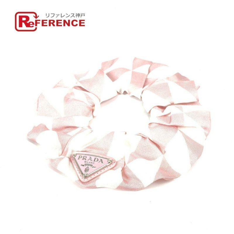 【美品】プラダ PRADA プラダ 1IF015 トライアングルロゴ 三角ロゴ プレート ヘアゴム ヘアアクセサリー ヘアゴム シュシュ シルク レディース ピンク 【中古】