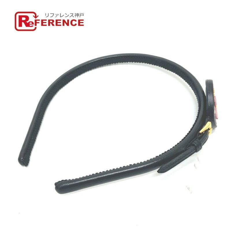 【中古良品】プラダ 黒色 PRADA プラダ 7WN ウィッチモチーフ ヘアアクセサリー アクセサリー 小物 カチューシャ レザー レディース ブラック 【中古】