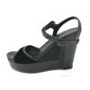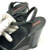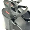 プラダ 黒色 PRADA プラダ プラダスポーツ 靴 ストラップ オープントゥ ハイヒール ウェッジソール 厚底 サンダル レザー レディース ブラック 【中古】