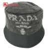 【未使用】プラダ 黒色 PRADA プラダ 1HC137 ロゴ スタッズ ハット帽 帽子 バケットハット ボブハット ハット ナイロン メンズ ブラック 未使用 【中古】