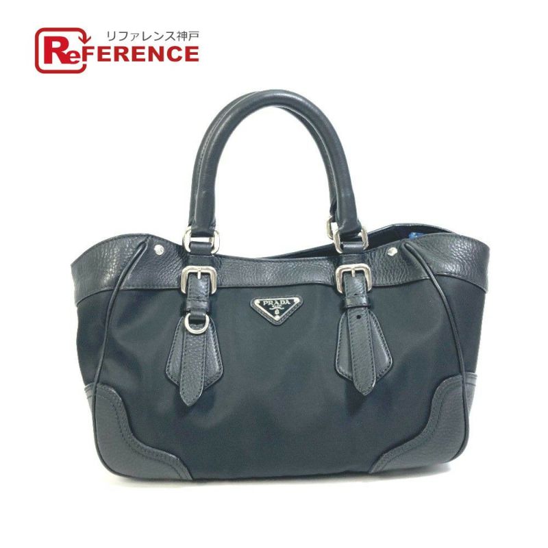 【中古良品】プラダ 黒色 PRADA プラダ トライアングルロゴ トートバッグ カバン トート ハンドバッグ ナイロン/レザー レディース ブラック 【中古】