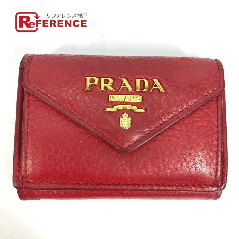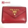 プラダ 赤色 PRADA プラダ 1MH021 ロゴ コンパクト財布 3つ折り財布 レザー レディース レッド 【中古】