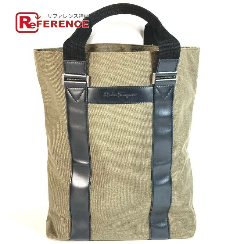 【中古良品】サルヴァトーレフェラガモ 緑色 Salvatore Ferragamo サルヴァトーレフェラガモ 縦型トート ロゴ カバン トートバッグ ビジネスバッグ ショルダーバッグ レザー/キャンバス ユニセックス カーキ 【中古】