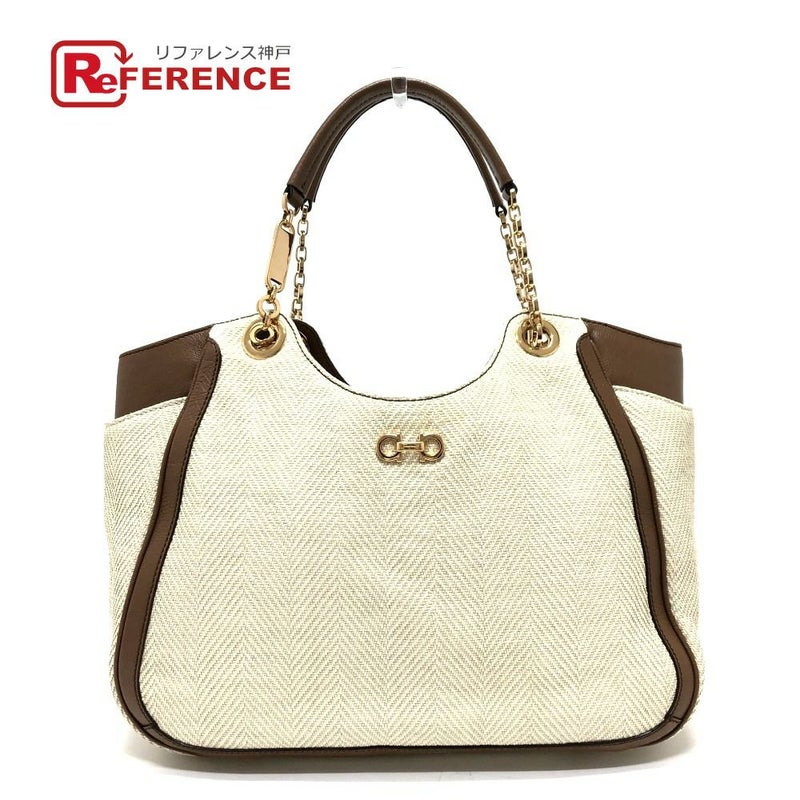 【中古良品】サルヴァトーレフェラガモ 薄茶色 Salvatore Ferragamo サルヴァトーレフェラガモ ガンチーニ 肩掛けバッグ カバン トートバッグ キャンバス/レザー メンズ ベージュ 【中古】