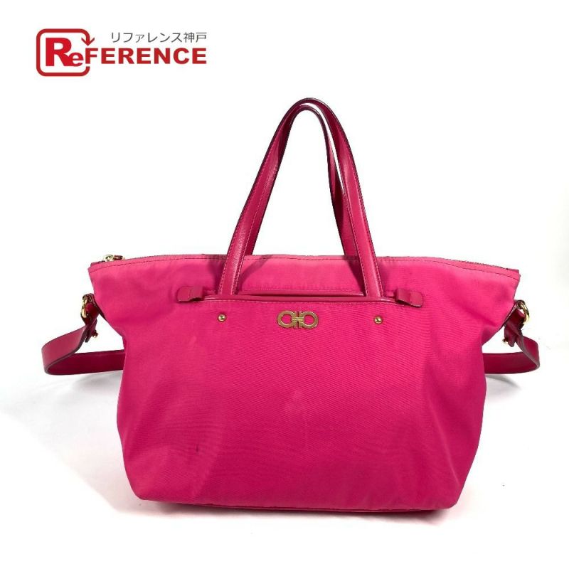 【中古良品】サルヴァトーレフェラガモ Salvatore Ferragamo サルヴァトーレフェラガモ ガンチーニ ロゴ 2WAY カバン トートバッグ ショルダーバッグ 斜め掛け ハンドバッグ ナイロン レディース ピンク 【中古】