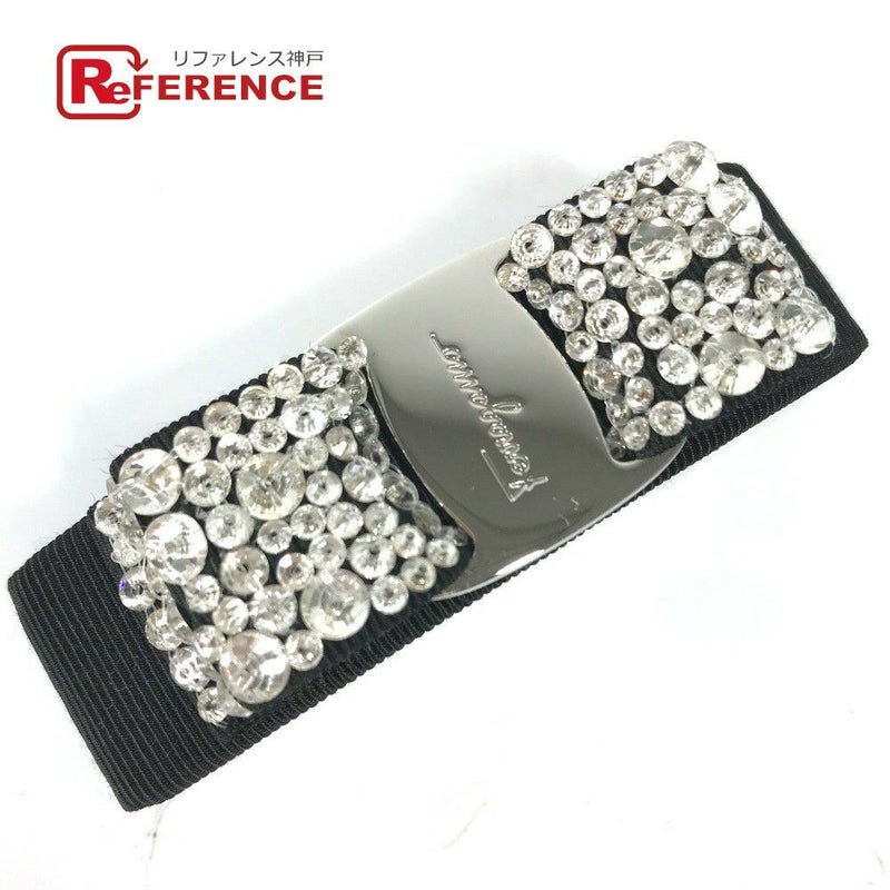 【新品同様】サルヴァトーレフェラガモ 黒色 Salvatore Ferragamo サルヴァトーレフェラガモ ロゴ ヴァラ リボン ラインストーン 髪飾り 髪留め ヘアアクセサリー バレッタ ナイロン レディース ブラック 新品同様 【中古】