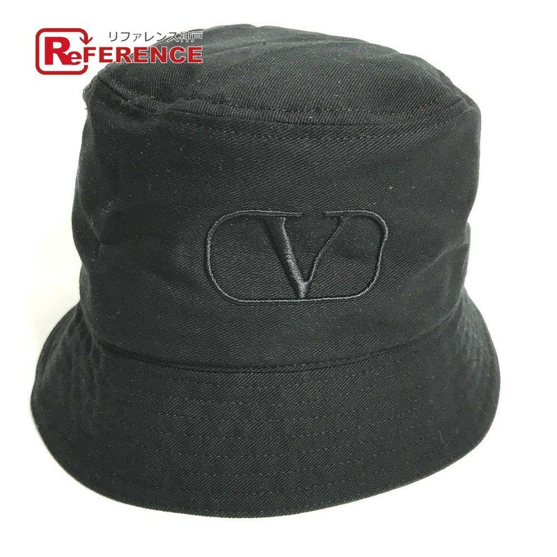 【美品】ヴァレンティノ 黒色 VALENTINO ヴァレンティノ HGA11HCY Vロゴ ハット帽 帽子 バケットハット ボブハット ハット コットン レディース ブラック 【中古】