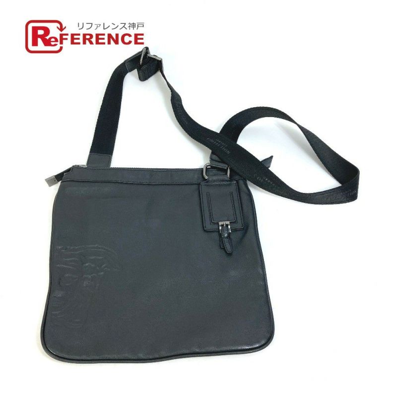 ヴェルサーチ 黒色 VERSACE ヴェルサーチ 斜め掛け メデューサ カバン ショルダーバッグ レザー メンズ ブラック 【中古】