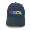 【中古良品】ヴェルサーチ 黒色 VERSACE ヴェルサーチ レインボー ロゴ刺繍 ベースボール 帽子 キャップ帽 キャップ コットン メンズ ブラック 【中古】