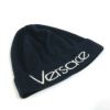 【中古良品】ヴェルサーチ 黒色 VERSACE ヴェルサーチ ロゴ ビーニー ニットキャップ 帽子 ニット帽 ウール /シルク レディース ブラック 【中古】