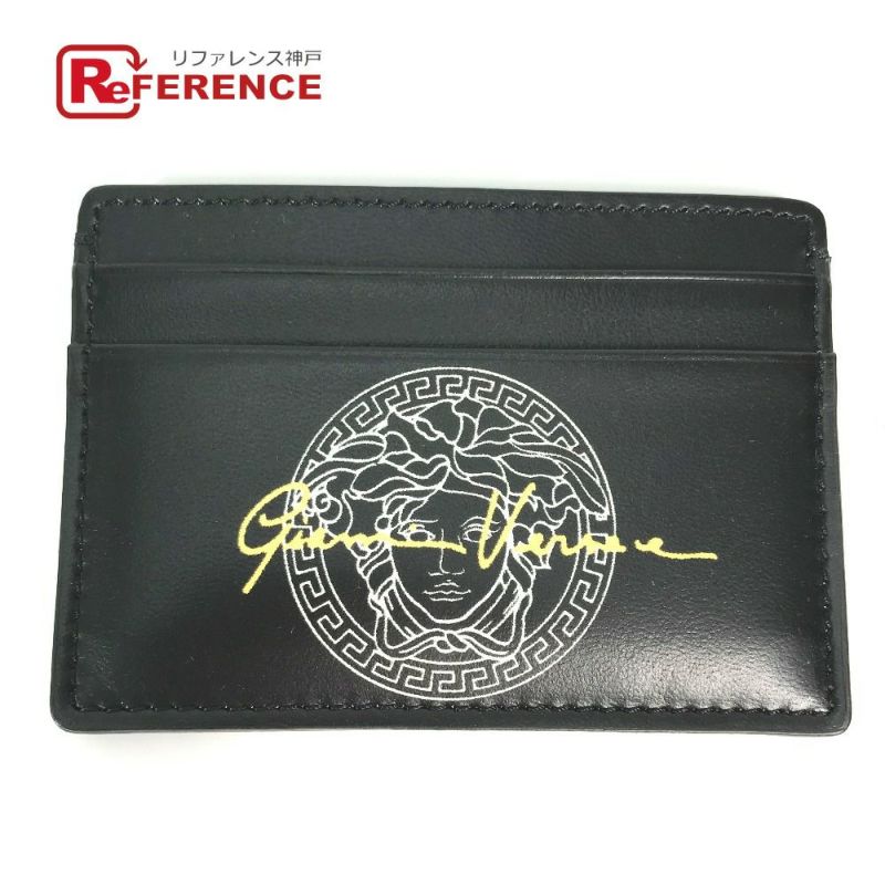 【美品】ヴェルサーチ 黒色 VERSACE ヴェルサーチ メデューサ 名刺入れ パスケース カードケース レザー メンズ ブラック 【中古】