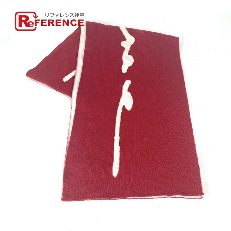 【美品】ヴェルサーチ 赤色 VERSACE ヴェルサーチ ロゴ バイカラー マフラー ウール ユニセックス レッド 【中古】