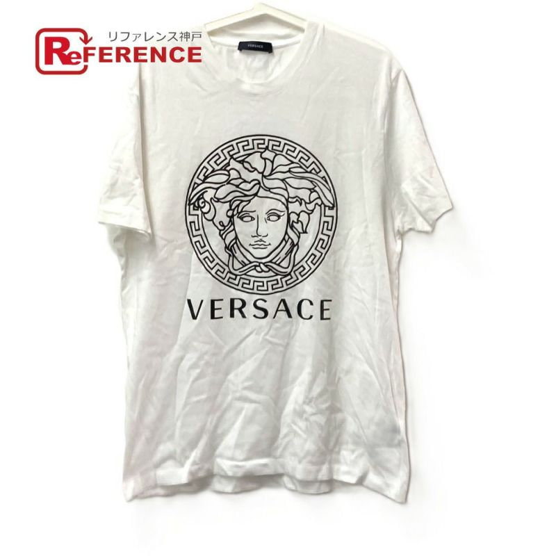 【新品同様】ヴェルサーチ 白色 VERSACE ヴェルサーチ メデューサ ロゴ アパレル 半袖 トップス バイカラー 半袖Tシャツ コットン メンズ ホワイト 新品同様 【中古】